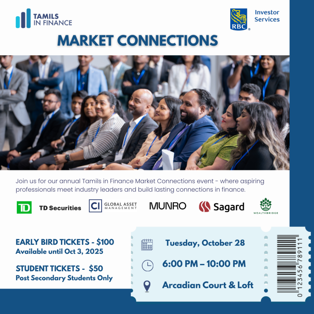 Tamils in Finance’s marquee networking event brings together Tamil professionals across the finance industry. Whether you’re just starting out or an experienced leader, Market Connections is designed to help you grow your network, exchange ideas, and build meaningful relationships.